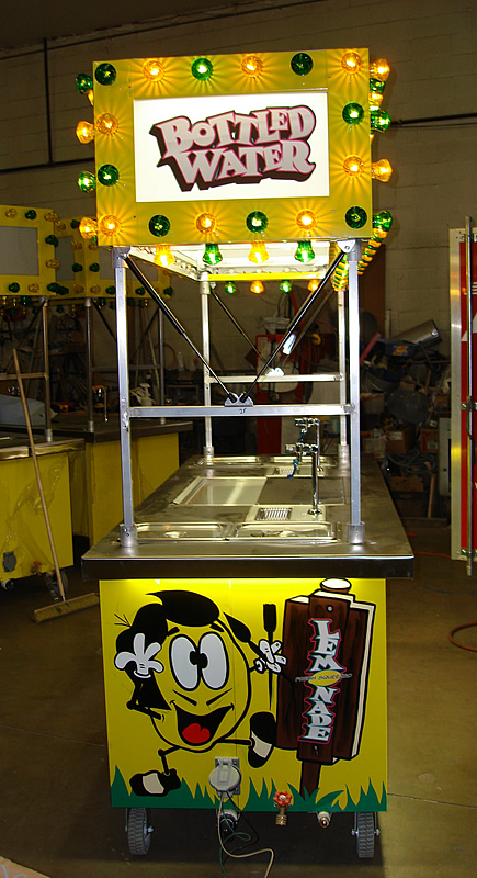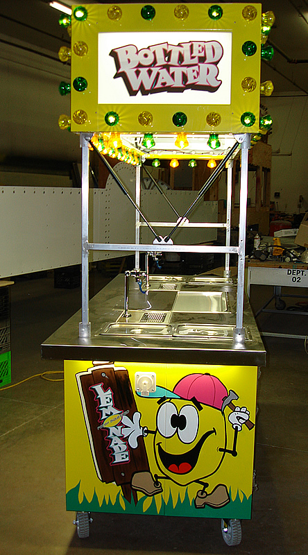 Shown here is another one of our custom-design concession stands. Completely movable with heavy-duty wheels, able to be setup almost anywhere with electricity and water.
